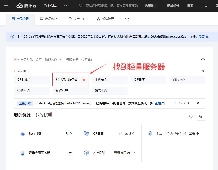 第三步:找到轻量服务器 如下图: