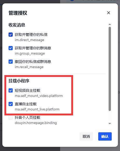 挂载抖音小程序权益