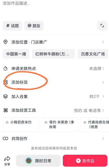 第六步:重新打开抖音APP发布视频,在标签里面找到挂载小程序,如下图: