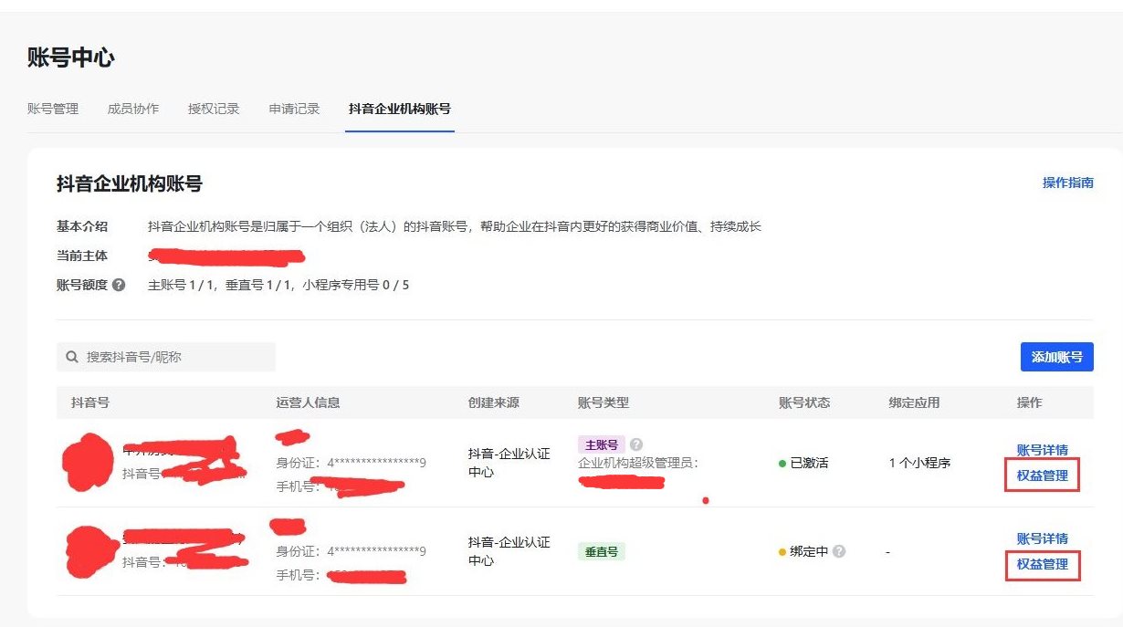 抖音企业机构账号,找到【权益管理】,如下图: