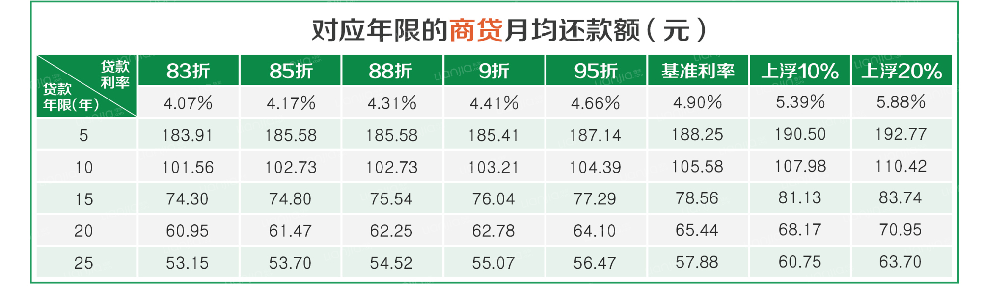 在贷款利率、贷款年限确定的情况下,借款人可根据“对应年限月均还款额”计算不同贷款额度需要支付的月供有多少差异,由此可判断自己是否能承担贷款额度对应的月供压力。